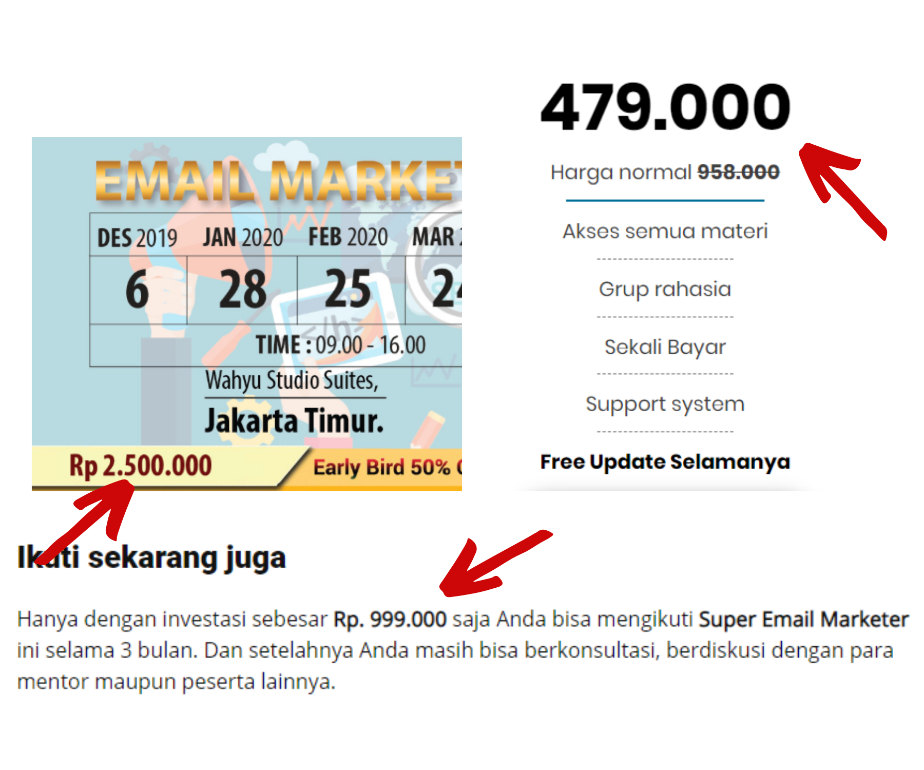 Biaya jauh lebih terjangkau + materi sangat lengkap + dapat tools Email Marketing Gratis