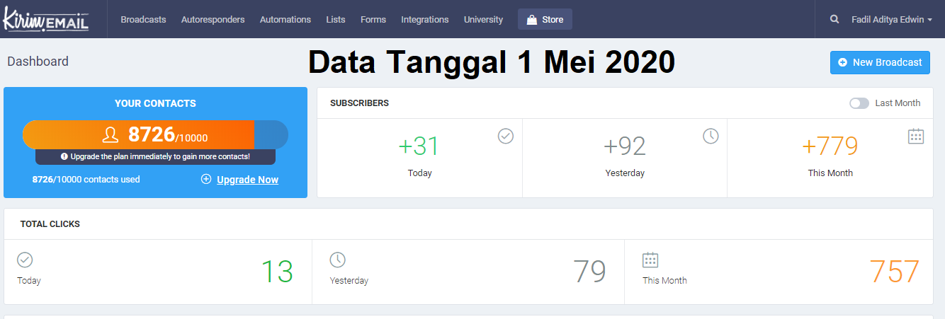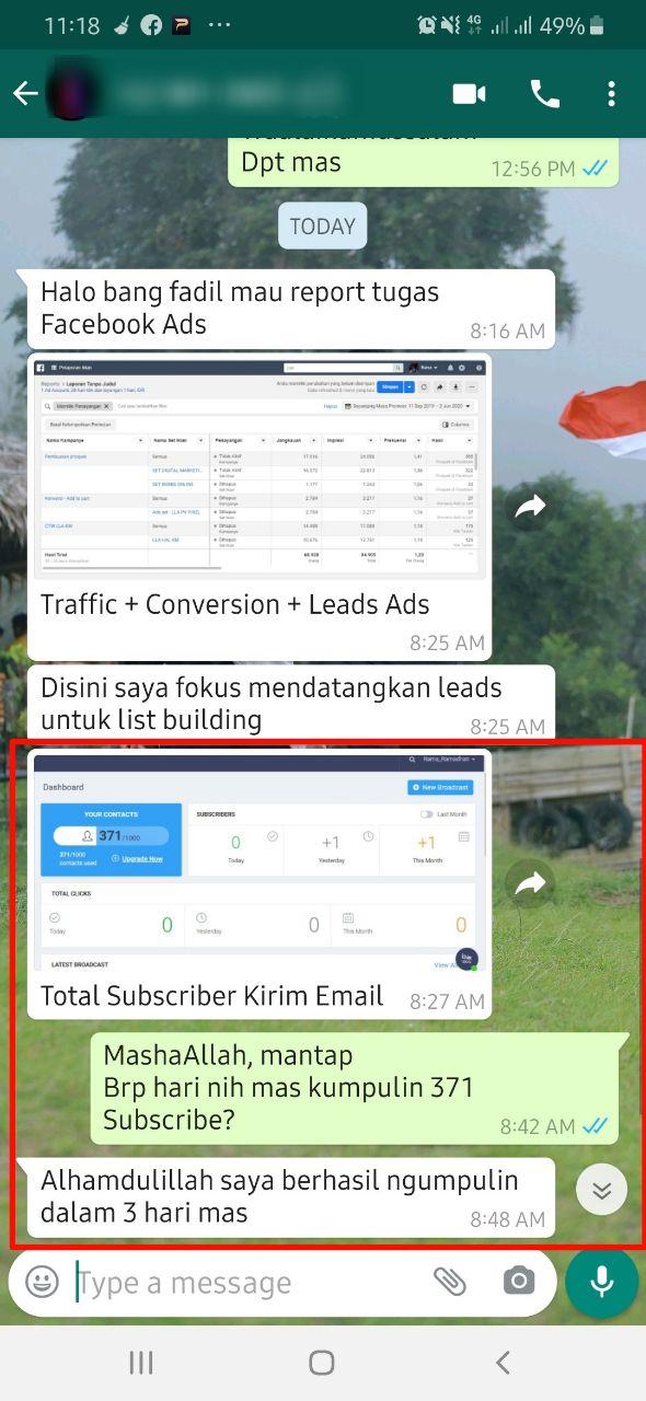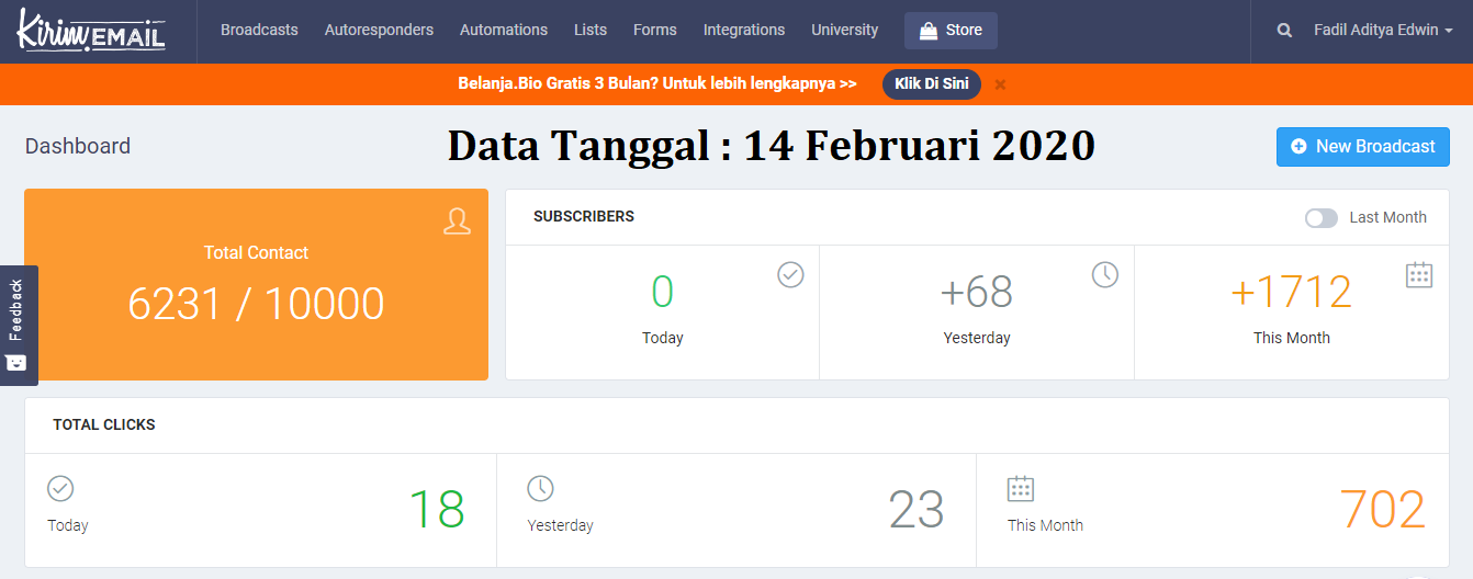 Sebagai seorang Affiliate Marketer tentu List Building adalah sesuatu yang wajib, dan Alhamdulillah bermodal promosi gratisan broadcast setiap harinya, mampu memperoleh komisi non stop dari penyedia Affiliate.